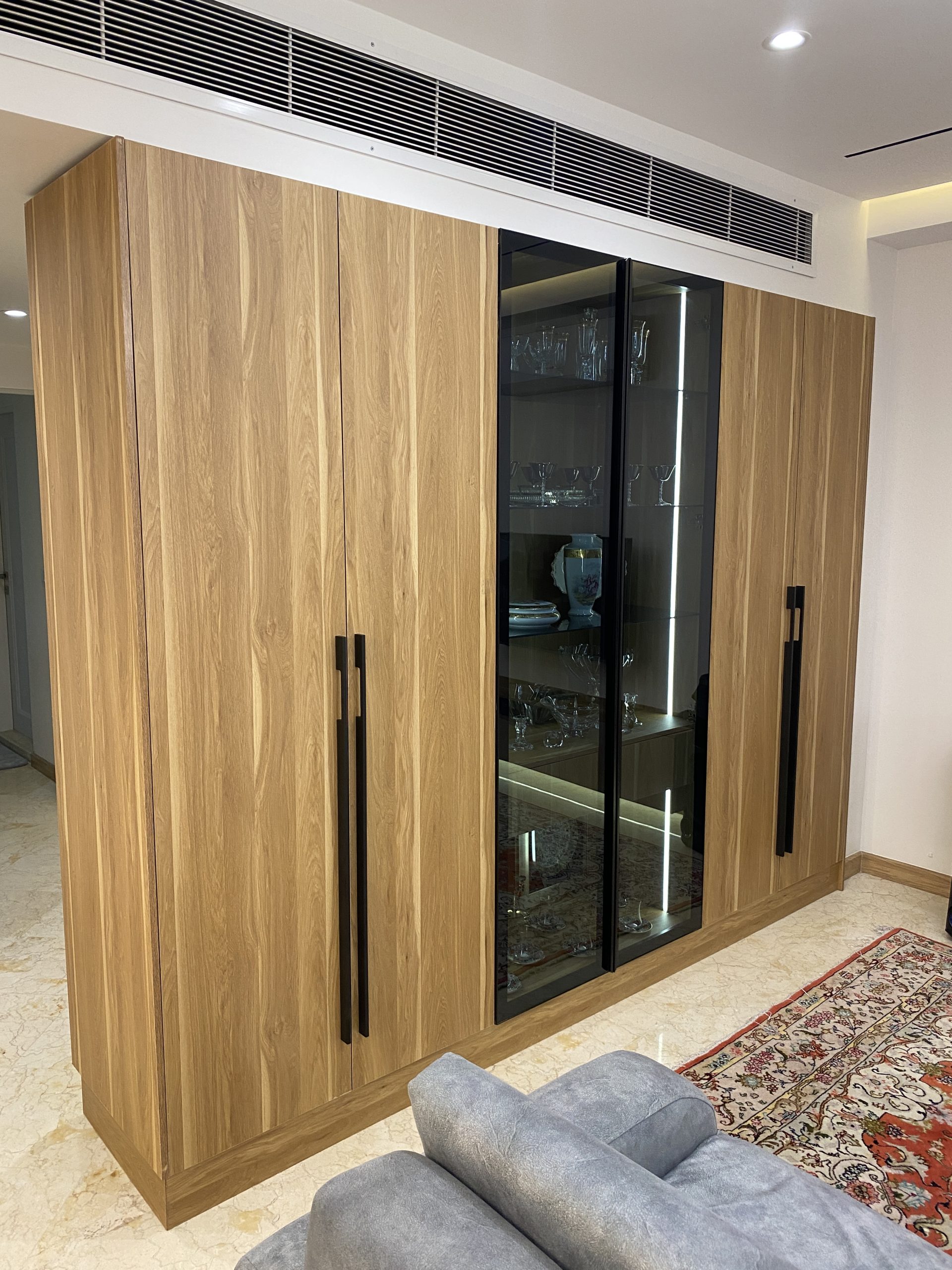 امروزه استفاده از ادوات نورپردازی مدرن و استفاده از سنسورهای روز به روز در حال افزایش است. در این پروژه ترکیبی از درب های شیشه ای فریم لس و لاین نوری با استفاده از سنسورهای چشمی و تاچ زیر سطحی در صنایع چوبی به کار رفته در اشپز خانه و اتاق خواب زیبایی کار را دوچندان کرده است.